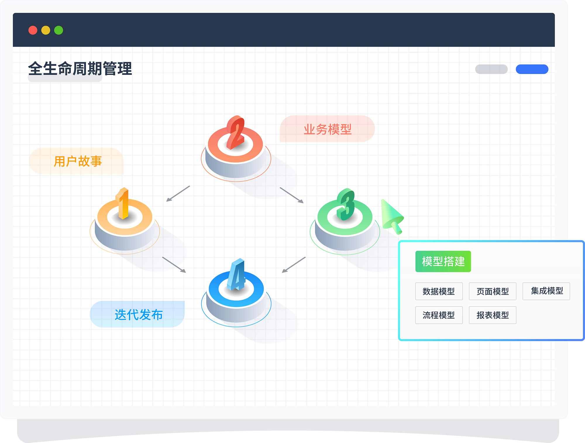 围绕产品的用户故事——模型设计/迭代——模型搭建——模型发布 ,,,进行系统的全生命周期闭环管理。。。
