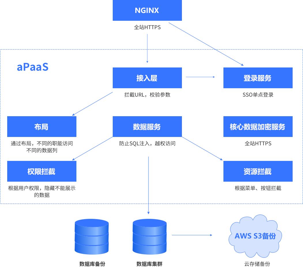 备注:平台与业务分离 ,,,开发运维只运维平台 ,,,业务专家生成的元数据(表/字段/运行逻辑)+业务数据全部以碎片的方式存储在DB中 ,,,技术人员无法解读 ,,,只有业务专家授权后才能导出元数据+业务数据