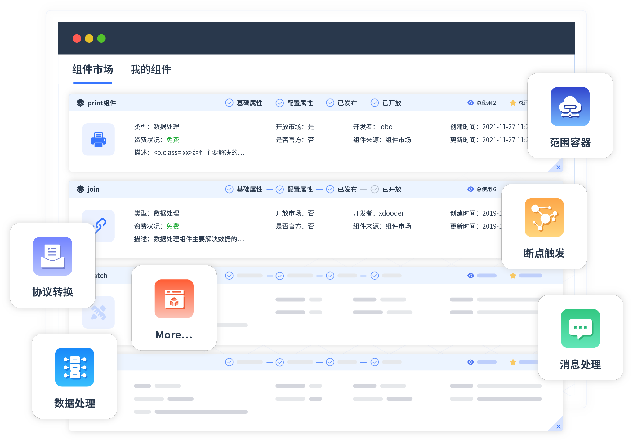 针对集成场景 ,,,OK钱包提供组件市场 ,,,例如协议转换、 、、消息处理、 、、文件操作等。。。除平台提供的组件外 ,,,客户可以自定义所需组件。。。